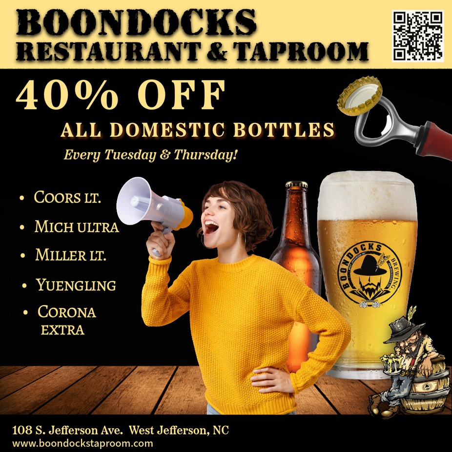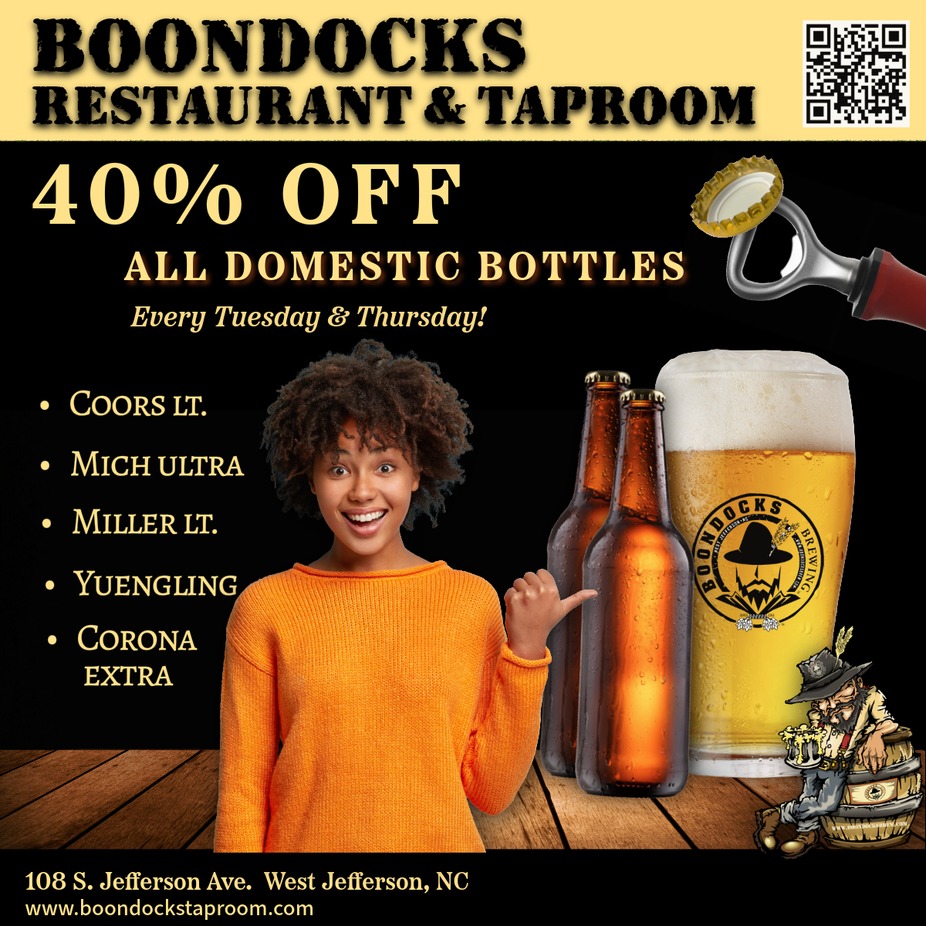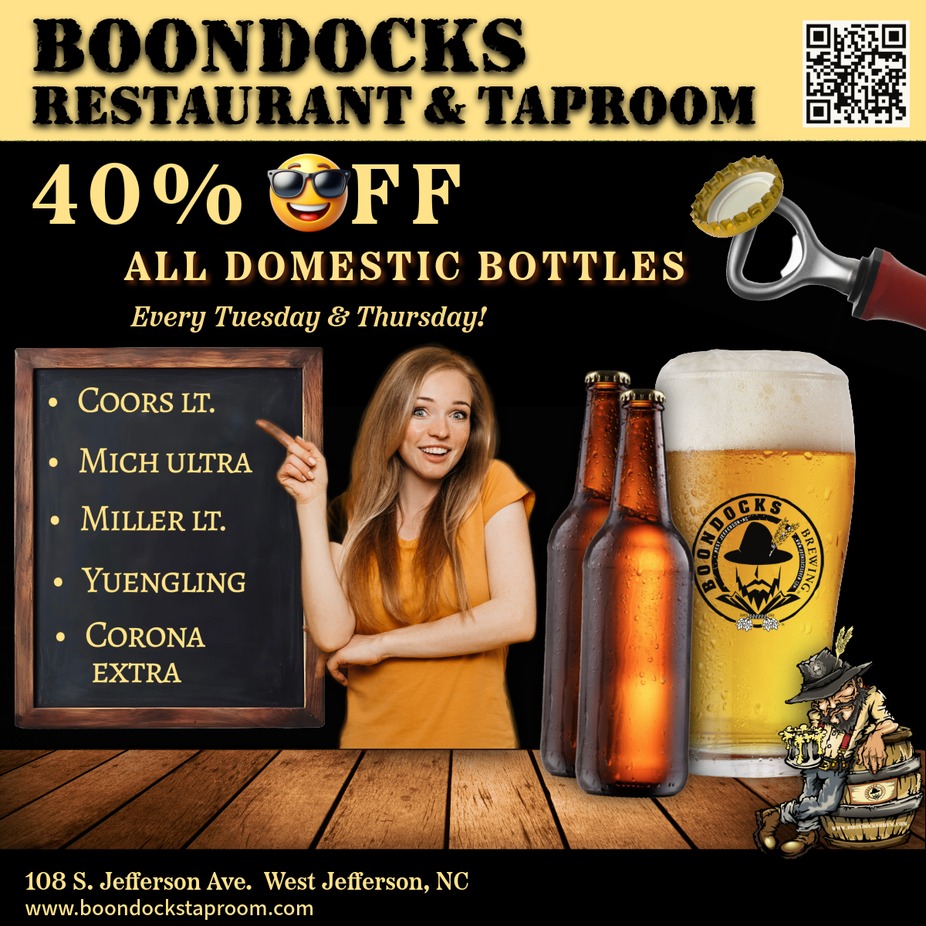Enjoy 40% off all domestic bottles all day!
